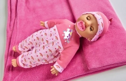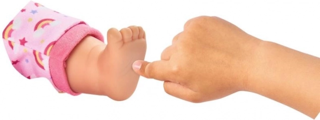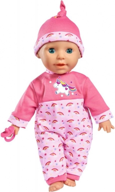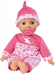 Această păpușă vine într-un frumos costumaș roz cu motiv de unicorn și modele curcubee, care cu siguranță va încânta fiecare copil.