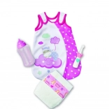 Set practic de accesorii pentru păpuși de 30–38 cm, care conține tot ce este necesar pentru adormire confortabilă și îngrijire. Include un sac de dormit, o periuță de dinți, o scutec și un biberon – ideal pentru joaca de zi cu zi și dezvoltarea imaginației.