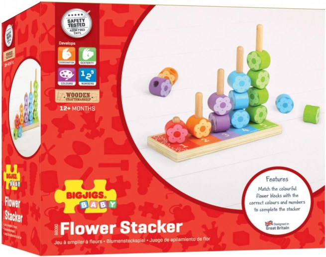 Jocul din lemn cu floricele colorate de înșirat BIGJIGS este o jucărie educativă ideală pentru primele învățări. Prin joc, copiii descoperă în mod natural culorile, sortează formele și exersează număratul, în timp ce își dezvoltă motricitatea fină. Construcția robustă din lemn și marginile netede garantează o utilizare sigură și de durată.