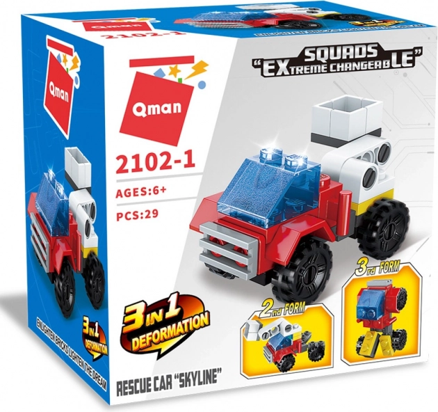 Bucură-te de o doză nesfârșită de creativitate cu setul de construcție Qman Squros – Vehicul de salvare Skyline 3‑în‑1. Dintr-un singur set de piese poți construi cu ușurință trei modele diferite: vehicul de salvare, mini utilaj sau robot. Datorită dimensiunilor compacte, este ideal pentru călătorii și pauze scurte de joacă.