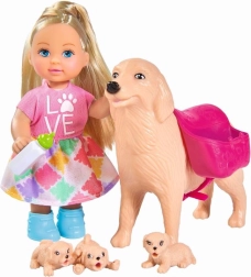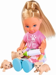 Cu acest set fermecător, copiii se vor bucura de ore întregi de distracție îngrijind animăluțele. Păpușa Evi are o ținută stilată și, alături de mama câine și cei trei pui, creează o lume perfectă pentru povești inventive. Sunt incluse și accesorii care susțin role-play și învățarea responsabilității prin joc.