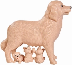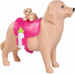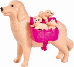 Copiii pot hrăni, purta și culca cei trei pui lângă mama câine – ideal pentru jocuri de îngrijire și dezvoltarea empatiei.
