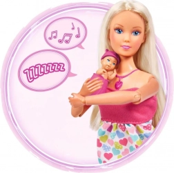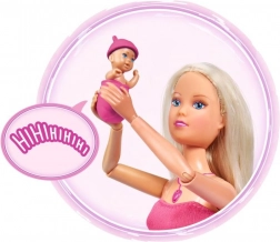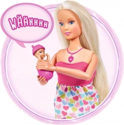 Păpușa Steffi Love le aduce copiilor o lume de povești delicate despre așteptare și primele momente de îngrijire a bebelușului. Controlul intuitiv prin colierul în formă de inimă redă diverse sunete – de la bătăile inimii la plâns și până la un cântec de leagăn liniștitor. Burtica poate fi închisă cu ajutorul unei clapete integrate, astfel încât jocul să curgă firesc de la sarcină la îngrijirea nou-născutului.