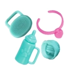 Setul include boluri pentru hrana, biberon, perie si jucarii pentru pisoi, oferind mai multe optiuni pentru joaca.