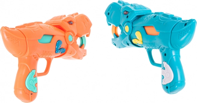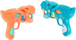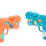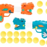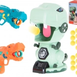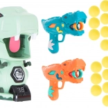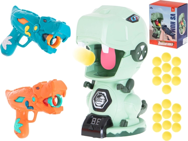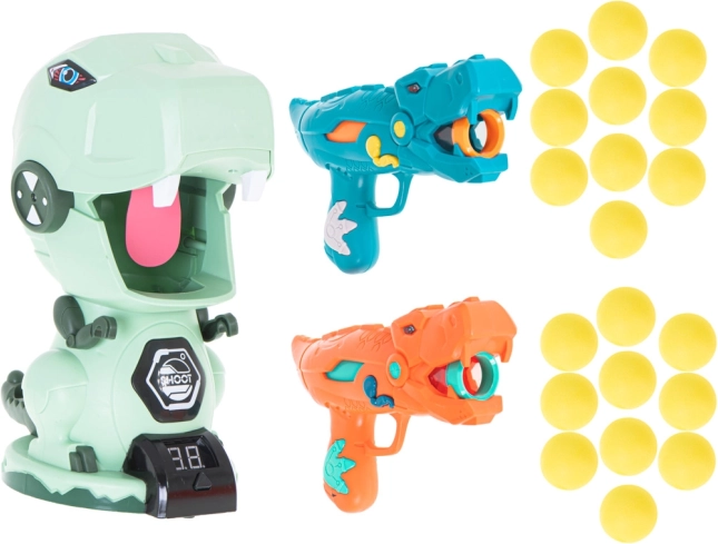 Două pistoale stilate în formă de dinozauri permit tragerea bilelor moi din spumă în siguranță și eficient. Ideal pentru jocuri în perechi și competiții.