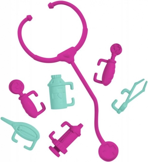 Pachetul include diverse accesorii de îngrijire care încurajează jocul de fantezie și îi învață pe copii bazele îngrijirii medicale.
