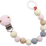 Bucurați-vă de o prindere sigură a suzetei cu acest lanț din lemn fabricat manual, ideal pentru copii mici. Lanțul este echipat cu un inel de silicon, permițând prinderea aproape a oricărei suzete. Toate materialele sunt atent alese pentru a fi sigure pentru copii, ceea ce înseamnă că sunt rezistente la umiditate și nu conțin substanțe dăunătoare.