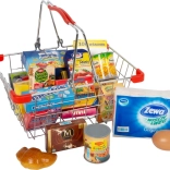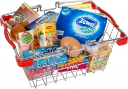 Acest coș de cumpărături metalic drăguț, dar robust, SMALL FOOT este un accesoriu grozav pentru toate magazinele și bucătăriile de jucărie. Este umplut până la refuz cu machete din plastic ale unor alimente și produse de uz zilnic cunoscute, astfel încât copiii pot exersa realist cumpărăturile, sortarea și servirea. Selecția machetelor incluse este variabilă, așadar fiecare pachet poate oferi surprize diferite.