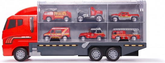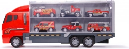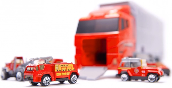 Cu camionul și cele șase mașinuțe metalice solide, copiii pot trăi momente de distracție în rolul de pompieri. Setul include diferite tipuri de mașini, proiectate să semene cu vehiculele reale. Fiecare mașină are părți mobile care asigură ore de distracție.