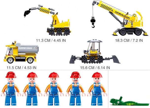 Sluban Șantier conține toate elementele necesare pentru a crea un șantier complet cu 465 de piese.