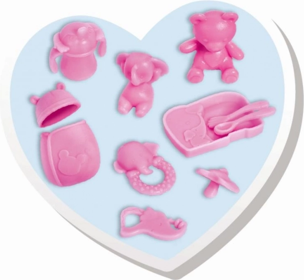 Setul include accesorii tematice pentru îngrijirea bebelușului – pentru joacă și mai creativă și de durată cu povești de familie.