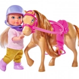 Păpușa EVI poartă haine elegante și accesorii care îi subliniază farmecul călăriei.