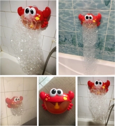 Acest crab adorabil transformă baia într-un spectacol distractiv plin de bule. În rezervorul detașabil torni pur și simplu un amestec de apă și o cantitate mică de spumă de baie, apeși butonul ON și crabul începe să creeze o spumă bogată, însoțită de o melodie plăcută. Ideal atât pentru copiii care iubesc apa, cât și pentru micii opozanți ai băii – forma jucăușă îi va captiva cu siguranță.