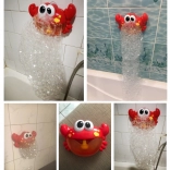 Apasă butonul ON și crabul va începe să elibereze spumă însoțită de o melodie veselă – motivația perfectă pentru ca cei mici să se bucure de baie.