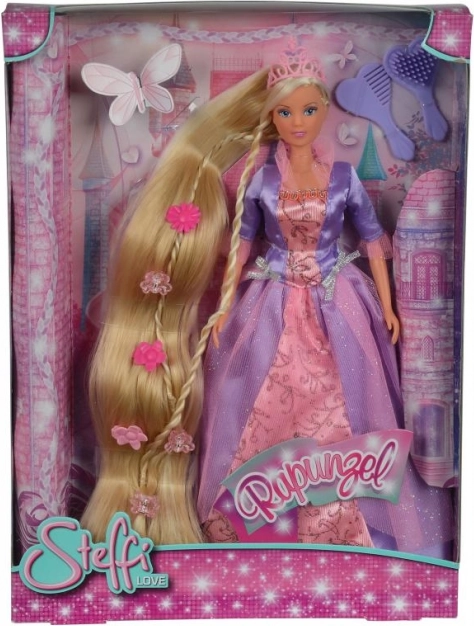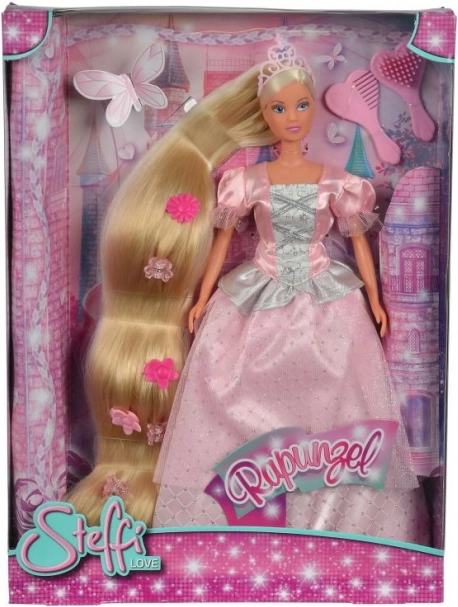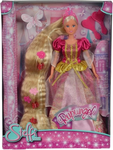 Descoperiți fermecătoarea păpușă Steffi Rapunzel, pe care o puteți pieptăna la nesfârșit. Această păpușă în rochie de seară și cu o coroană sclipitoare oferă posibilități uimitoare de coafat.