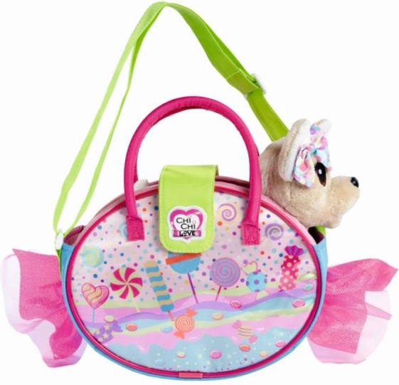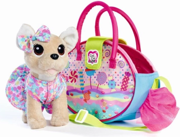 Designul inspirat de dulciuri este completat de brelocuri în formă de bomboane, care oferă poșetei un stil personal. Cățelușul este moale, catifelat și sigur pentru îmbrățișat, așa că cei mici îl vor îndrăgi rapid. Joaca cu cățelușul încurajează responsabilitatea și grija în situațiile de zi cu zi.