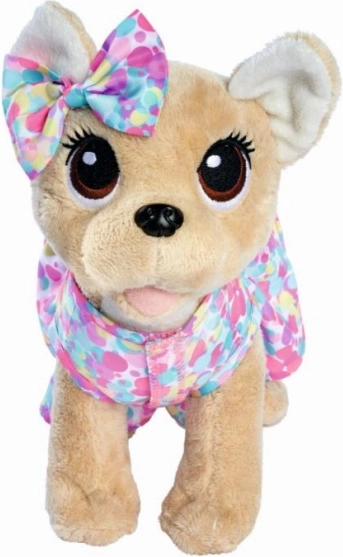 Acest set fermecător îmbină un accesoriu la modă cu un pluș catifelat: poșeta colorată, cu motiv dulce, ascunde un cățeluș chihuahua adorabil, care poate fi scos oricând și folosit separat pentru joacă. Datorită curelei de umăr, copiii își pot lua animăluțul peste tot cu ei, în deplin confort.