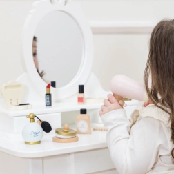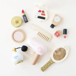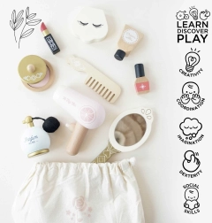 Acest set superb din colecția Honeybake de la LE TOY VAN oferă copiilor o experiență autentică de machiaj și coafură. Geanta textilă din bumbac natural ascunde accesorii din lemn cu margini rotunjite, lăcuite cu vopsele netoxice pe bază de apă. Ideal pentru micii stiliști care vor să creeze în siguranță și cu fantezie.