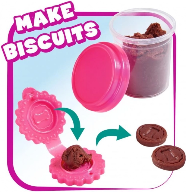 Modelează o gustare din plastilină, hrănește chihuahua și activează efectul de grămăjoară printr-o apăsare delicată a lesei. Copiii exersează responsabilitatea într-un mod amuzant.
