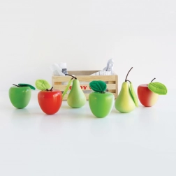Bucurați-vă de o zi „la piață” cu această frumoasă ladă din lemn LE TOY VAN plină cu fructe. Setul include două mere roșii, două mere verzi și două pere verzi, cu frunze din fetru. Jucăria este realizată din lemn sustenabil, vopsită cu vopsele netoxice pe bază de apă și se potrivește perfect în mâinile mici. Susține jocul imaginativ, motricitatea fină și învățarea despre o alimentație sănătoasă.