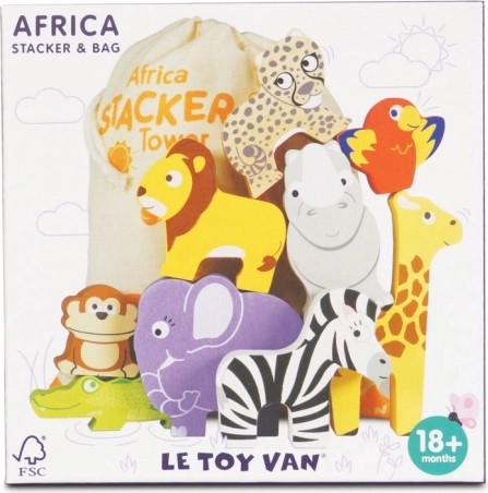 Acest set jucăuș aduce o parte din sălbăticie în camera copilului. Cei mici pot construi cel mai înalt turn din animăluțe – girafă, leu, elefant, zebră, maimuță, rinocer, ghepard, crocodil și papagal – exersând echilibrul, răbdarea și imaginația. Jocul de echilibrare dezvoltă gândirea logică și sprijină percepția formelor și a culorilor.