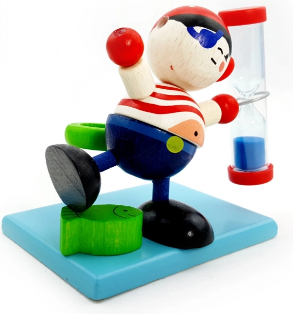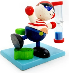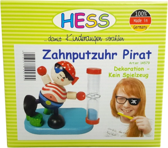 Motivați copiii să se spele regulat pe dinți într-un mod distractiv. Piratul din lemn cu clepsidră cu nisip albastru măsoară fiabil 2 minute, iar suportul integrat pentru periuța de dinți păstrează ordinea în baie.