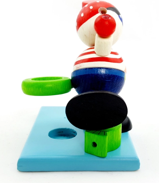 Produsul este 100% fabricat în Germania din lemn original netratat, atent selectat. Datorită dimensiunii compacte de 9 cm, se potrivește pe lavoar sau pe raft și, prin designul vesel, îi distrează și motivează pe cei mici.