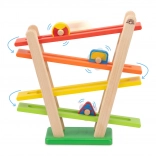 Pista curcubeu din lemn Wonderworld îmbină o execuție de calitate cu un design atrăgător, care îi cucerește atât pe copii, cât și pe părinți. Cei mici nu doar se joacă, ci își dezvoltă totodată concentrarea, îndemânarea și motricitatea fină. Formele colorate alunecă pe planul înclinat, stimulând vederea și coordonarea mișcărilor.