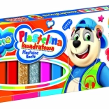 Plastilina pătrată BAMBINO cu 18 culori, inclusiv 2 sclipitoare (aurie și argintie), este elastică, ușor de modelat, nu se lipește de suport și nu murdărește mâinile. Este sigură pentru copii și îndeplinește cerințele 2009/48/CE. Pachetul include suport pentru creație gratuit.