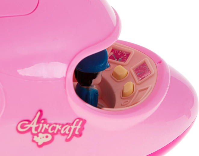 La apăsarea butoanelor, emite sunetele cunoscute de pe un aeroport real, incluzând aterizarea. Se aprinde cu LED-uri colorate. Avionul mai cântă și o melodie. Are roți mobile. În avion așteaptă un pilot pentru pasageri. Va lua la bord un călător elegant și o stewardesă. În timpul zborului, pe lângă priveliștile uimitoare din fereastră, este asigurat un serviciu de gustări, care va fi livrat pe un cărucior special. Fără bagaje nu poți călători, astfel încât setul include două valize deschizabile cu mânere detașabile.