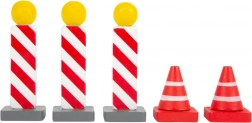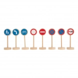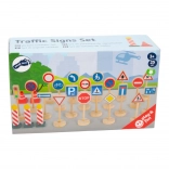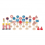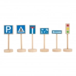 Setul de 25 de indicatoare rutiere din lemn și accesorii (de ex. conuri) îi ajută pe copii să înțeleagă regulile circulației rutiere în scenarii de joc realiste. Datorită simbolurilor lizibile și bazelor stabile, se manevrează ușor și sunt un adaos excelent la covoarele rutiere și căile ferate de jucărie.