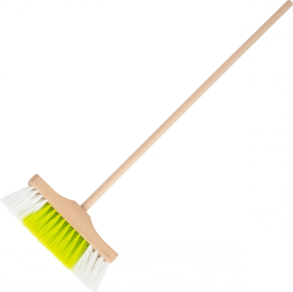 Mânerele din lemn și componentele solide din plastic asigură stabilitate și durată de viață îndelungată, fie că cei mici fac ordine acasă sau în sala de joacă.