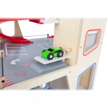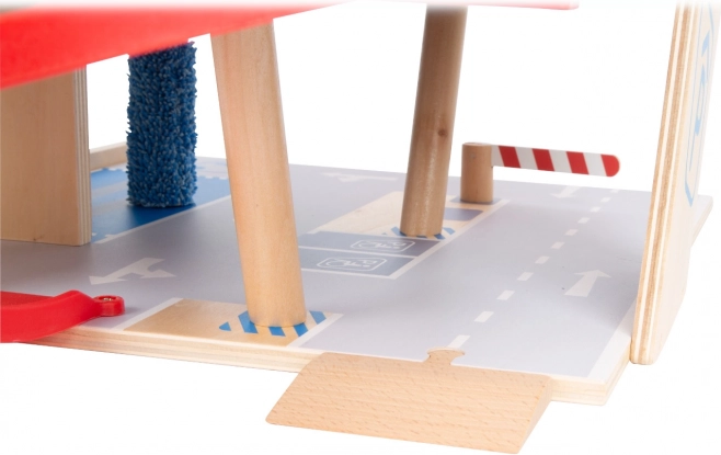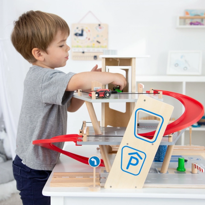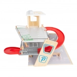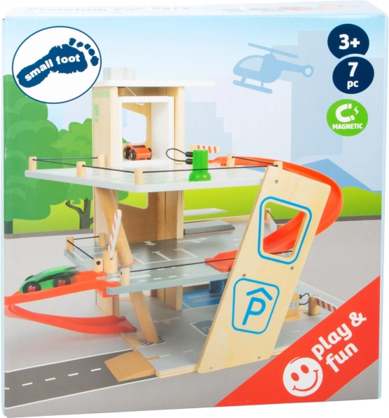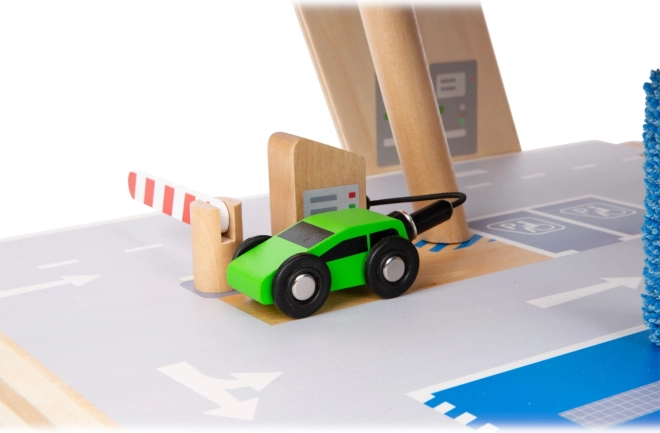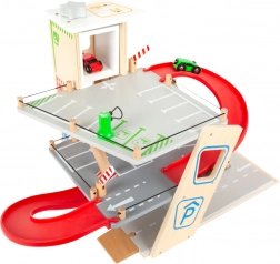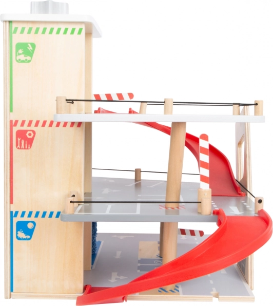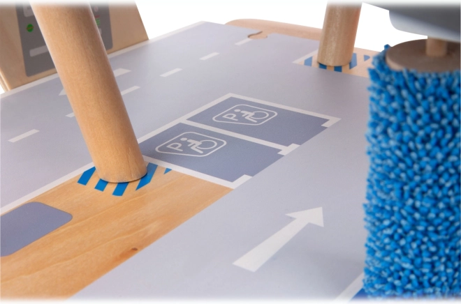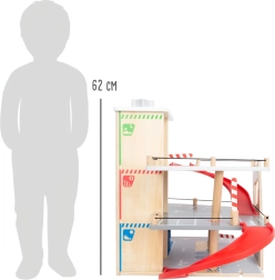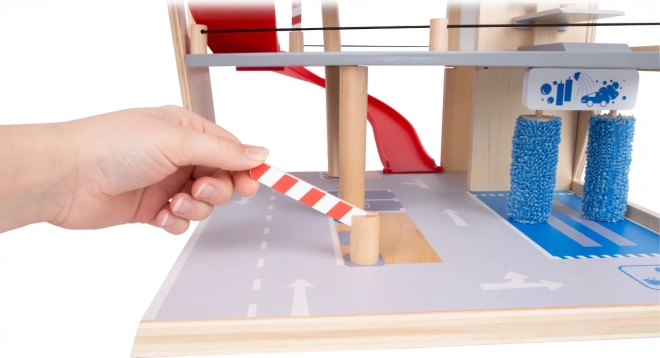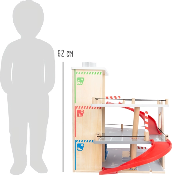 Acest parcaj premium din placaj de lemn de calitate oferă trei niveluri bogat echipate, conectate printr-un lift funcțional și două rampe line. Copiii pot parca, alimenta, încărca, spăla și repara – totul într-un singur loc, cu elemente realiste și o jucabilitate excelentă.