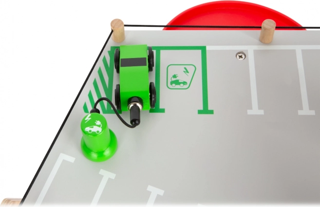 Copiii pot alimenta, încărca mașina electrică și ridica vehiculul pe platformă. Accesoriile realiste stimulează imaginația și îi învață bazele comportamentului în trafic.