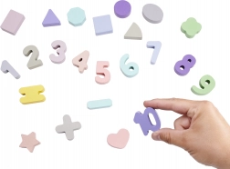 Copiii introduc cifrele colorate și formele geometrice în decupajele corespunzătoare de pe placă. Prin potrivire își exersează motricitatea fină, discriminarea vizuală și gândirea logică.