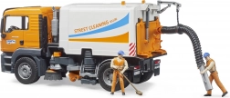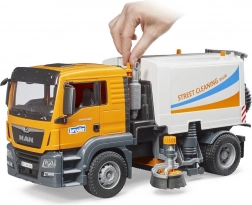 Mașina de măturat BRUDER MAN TGS la scara 1:16 oferă copiilor o experiență autentică a curățării străzilor orașului. Datorită periilor funcționale, furtunului flexibil de aspirație și containerului basculant, cei mici învață ușor cum funcționează vehiculele reale de curățenie. Construcția robustă din materiale plastice de calitate garantează durabilitate și joacă în siguranță.