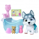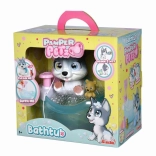 Descoperă lumea distracţiei cu Căţeluşul Husky Pamper Petz în cadă. Acest prieten canin adorabil le oferă copiilor multe ore de joacă, în care pot avea grijă de animalele lor de companie, să le spele și să le îngrijească ca pe animale reale.
