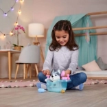 Setul include și o cadă cu funcţie de pompare, care oferă copiilor senzaţia unei adevărate băi pentru animăluţe. Include și accesorii precum o sticluţă și un scutec.