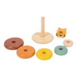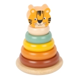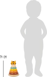 Aceast impresionant turn de inserare cu motiv de tigru este nu numai o jucărie frumoasă, dar și un instrument excelent pentru dezvoltarea abilităților copiilor. Este compus din 7 piese, inclusiv o bază și șase inele colorate, care pot fi așezate pe un suport încheiat cu un cap de tigru. În acest fel, copiii exersează coordonarea mâini-ochi și înțelegerea formelor.
