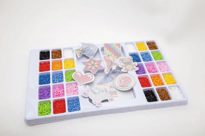 Vă prezentăm setul cadou de mărgele de călcat A&F, ideal pentru toți iubitorii de creativitate. Acest set bogat oferă 6.000 de mărgele și 9 șabloane, dintre care 8 mici și 1 mare. Îți permite să creezi ușor multe modele diverse și unice.