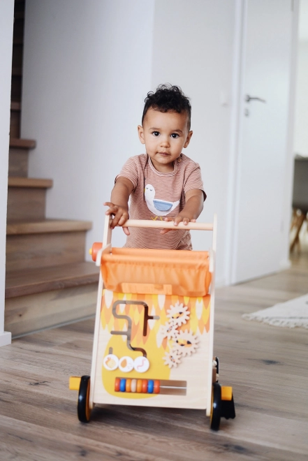 Merslinul de lemn Tukan este un ajutor indispensabil pentru primii pași ai copiilor tăi. Construcția sa solidă cu formă triunghiulară asigură stabilitate maximă, iar roțile cauciucate permit mișcare silențioasă și sigură pe podele. Copiilor le oferă nu doar distracție prin mișcare, dar și multe oportunități de joacă.