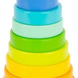 Cu zece discuri viu colorate și o tijă pe o bază rotunjită, acest turn susține dezvoltarea abilităților motrice și diferențierea culorilor.