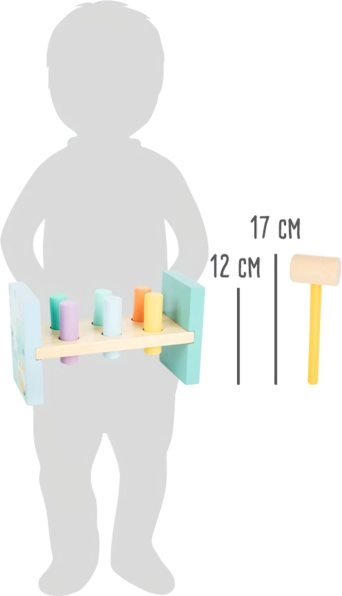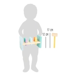 Această jucărie este concepută pentru a dezvolta motricitatea fină și coordonarea mână-ochi la copii. Țărușii colorați și micuțul ciocan îi motivează pe cei mici să se joace și le îmbunătățesc forța și coordonarea.