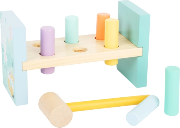 Descoperă farmecul unei jucării tradiționale într-o interpretare modernă. Bancul nostru de bătut în nuanțe pastel delicate este ideal pentru copiii care vor să-și încerce forța și, în același timp, să-și îmbunătățească motricitatea. Ilustrațiile cu animăluțe oferă jucăriei un aspect unic. După ce au fost bătuți toți țărușii, poți pur și simplu întoarce jucăria și începe din nou.