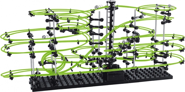 Descoperă magia și ingeniozitatea cu pista de bile luminoasă Spacerail! Un set de construcție captivant pentru mințile inventive, oferindu-ți șansa de a crea o aventură unică pentru bile pe o pistă lungă de 22 de metri care strălucește în întuneric.