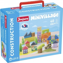Descoperiți farmecul clasicei construcții din lemn JEUJURA, care dezvoltă imaginația și motricitatea fină a copiilor. Setul conține 40 de piese atent prelucrate și o planșă de joc, cu ajutorul cărora copiii pot construi cu ușurință un sătuc pitoresc. Fabricat în Franța din lemn masiv de fag și pin, tratat cu vopsele sigure pe bază de apă. Ambalajul practic, un mic geamantan din carton imprimat cu cerneluri vegetale, transformă acest set într-un cadou grozav. Materiale sigure, execuție de calitate și joacă creativă pentru copii de la 2 ani.