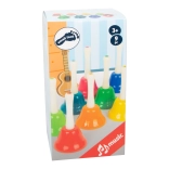 Descoperiți magia muzicii cu acest set de opt clopoței, care nu doar că sunt frumos colorați, dar și funcționali, fiecare ton acoperind gama de la C la H. Copiii pot învăța diferite melodii, precum 'Bunicul Donald avea o fermă', 'Jingle Bells' și 'Twinkle, Twinkle, Little Star'. Acest set susține educația muzicală, dezvoltarea ritmului și a motricității fine. Ideal pentru grădinițe și clasele primare.