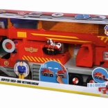 Salvați ca adevărați eroi cu macara auto de pompieri 2 în 1 Pompierul Sam – un vehicul realizat în detaliu, care oferă parte frontală detașabilă, braț rotativ 360° cu extensie până la 75 cm, tun de apă funcțional și troliu mecanic. Suporturile telescopice stabile, ușa spate care se deschide și efectele sonore asigură multă acțiune. În pachet se află figurina Sam, câinele Radar și vehiculul Rover.