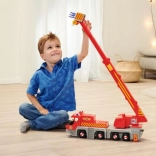 Porniți la intervenție cu macara auto de pompieri 2 în 1 Pompierul Sam. Vehiculul robust din plastic are o lungime de 50 cm și, datorită părții frontale detașabile, oferă două moduri de joacă – deplasare cu cabina și lucru cu macaraua.