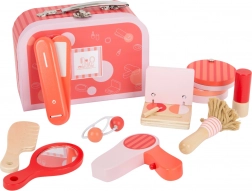 Această geantă cosmetică pentru copii de la marca Small Foot este ideală pentru micii artiști și artiste cărora le place să se joace de-a rolurile și să se simtă ca adulții. Setul include 10 ustensile cosmetice diferite realizate din lemn de calitate.